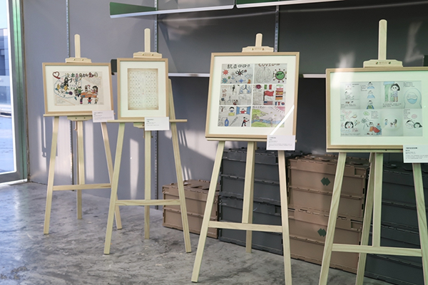 诸多作品中,一对双胞胎姐妹陈玥含和陈玥竹的画作被摆放在展览“C位”,格外引人注目,浓缩了“在家里的餐桌前痛哭告别”“在病房里裹着防护服的母亲打病毒怪兽”等多个场景。