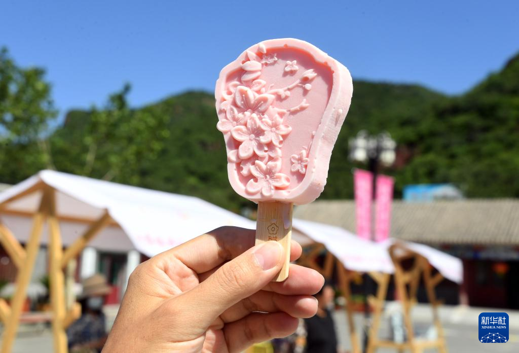 7月7日在活动现场拍摄的丫髻山桃花扇文创雪糕。