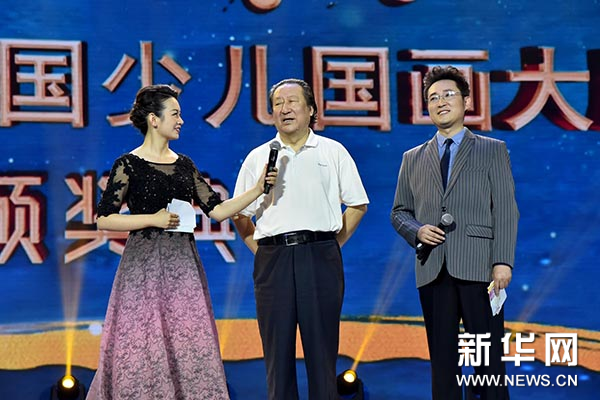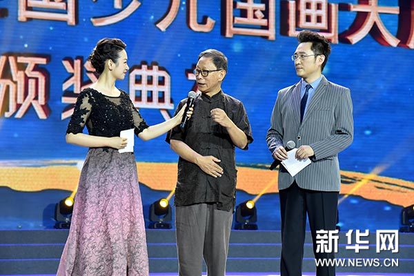 杨景芝、王培东、吴悦石、刘曦林、都海江、刘万鸣、贾广健上台为第三、四组“经典传承——第二届全国少儿国画大展”优秀奖的获奖选手颁奖。