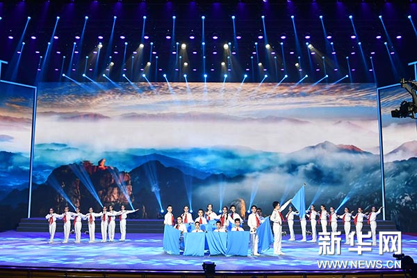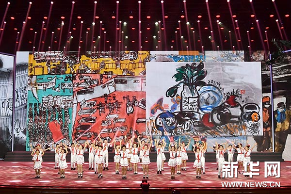 当《我们是共产主义接班人》的音乐响起,全体演员走上舞台齐声放歌,铿锵旋律响于耳际,立即引起台上台下大合唱。经典的红色歌曲唱出了一代代少年儿童不忘初心、牢记使命的心声。“经典传承——第二届全国少儿国画大展”颁奖盛典在嘹亮的歌声中圆满落下帷幕。