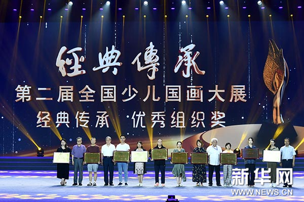 “经典传承——第二届全国少儿国画大展”是书画频道和中国艺术档案学会开创性推出的大型公益文化活动,以弘扬中华优秀传统文化、提升少年儿童美育素质为宗旨,以践行落实“美育从娃娃抓起”为主导,力求通过传统水墨文化基因和红色经典文化基因的相互融合,助力广大少年儿童追求更有高度、更有境界、更有品位的人生与未来。7月24日下午,本届大展的颁奖盛典在北京会议中心举行。