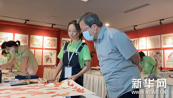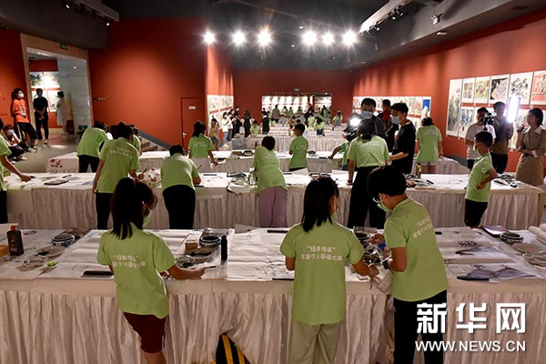 在颁奖典礼进行前,7月24日上午,本届大展名家互动创作环节的第二场在书画频道美术馆举行,著名艺术家冯远、尼玛泽仁、吴悦石、贾广健、李洋、祁海峰与第二批小选手们展开互动创作。小选手们各显神通,用笔墨描绘着一幅幅生动的画面,国画名家们也被这些充满天真童趣的画作所吸引,耐心细致地在构图、笔墨、着色等多方面给予艺术指导,并与各位小选手亲切互动。