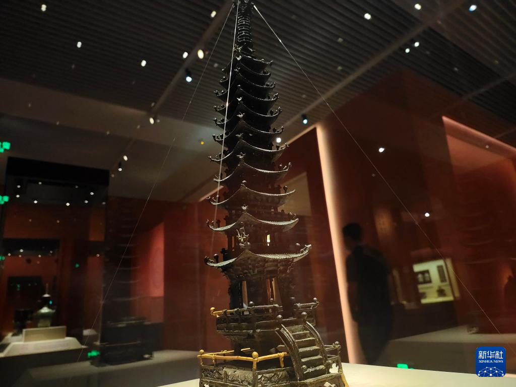 这是展出的韩国青铜多层小塔(7月26日摄)。