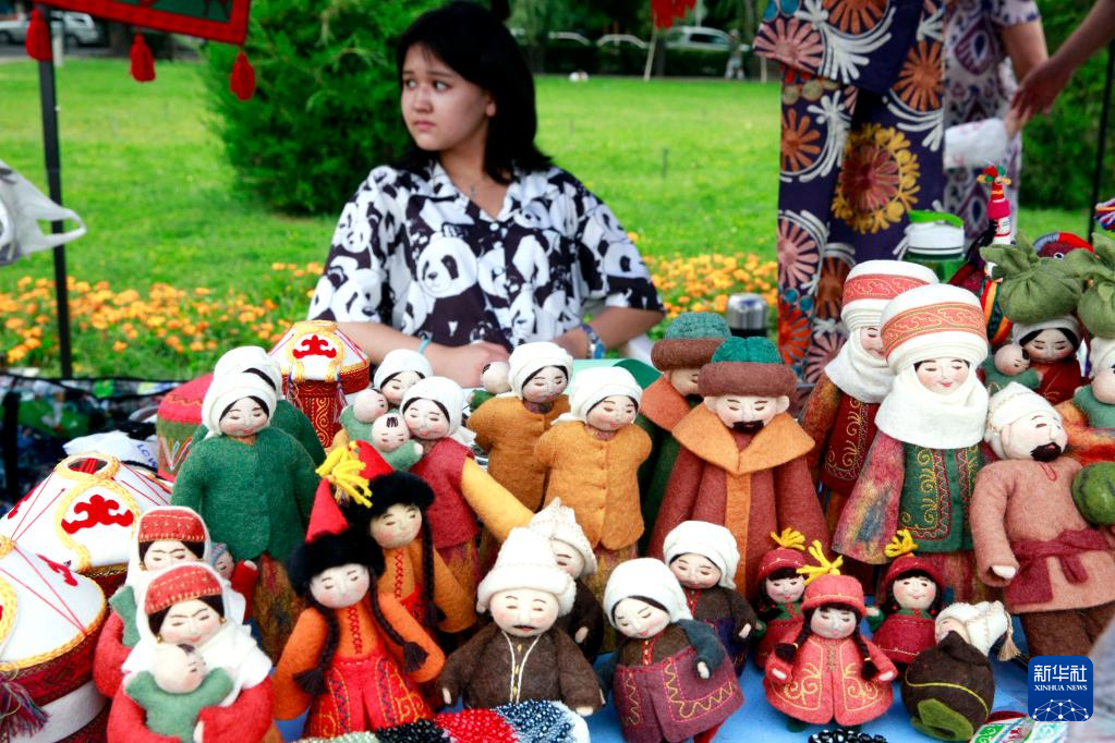 这是7月28日在吉尔吉斯斯坦首都比什凯克举办的国际传统文化和手工艺节上拍摄的手工艺品。