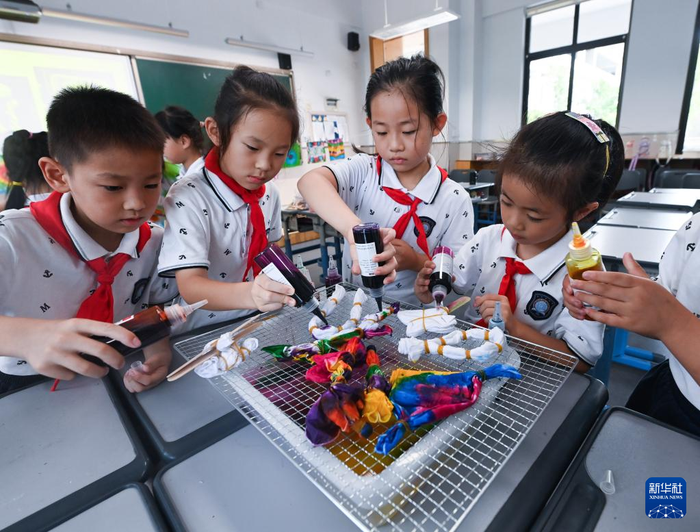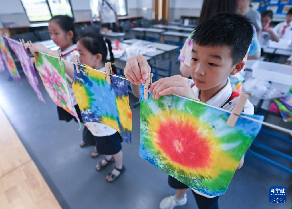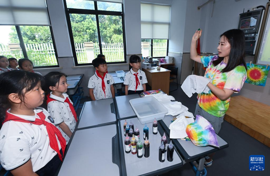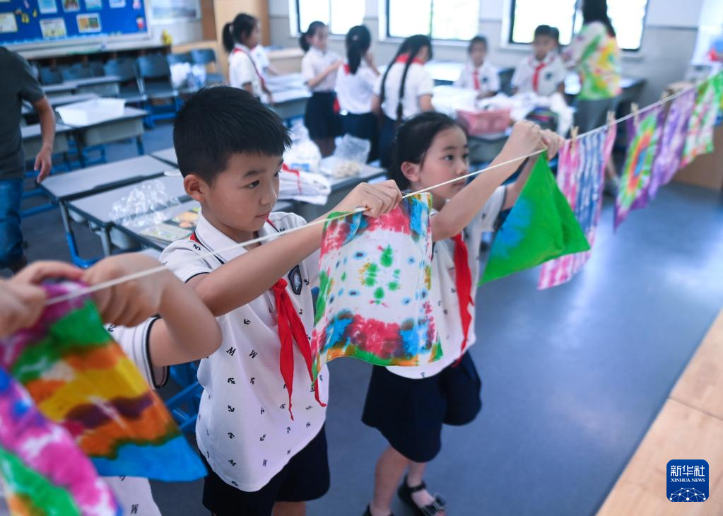 据了解,为充实学生们在“双减”政策实施后的暑期生活,浙江省湖州市吴兴区织里镇的中小学校积极开展暑期托管服务,安排包括乡土文化、趣味游戏、劳动技能等内容的课程,促进孩子身心健康、德智体美劳全面发展。