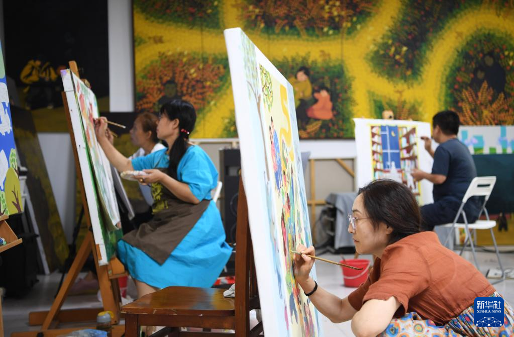 被列入河南省非物质文化遗产名录的舞阳农民画兴起于20世纪50年代,其构图饱满、色彩绚丽、造型质朴,生动记录了农村社会发展变迁,展现了农民对美好生活的向往。如今,在河南省漯河市舞阳县,当地正积极探索农民画与研学体验、乡村振兴有效结合,促进乡村旅游与文化产业融合发展。