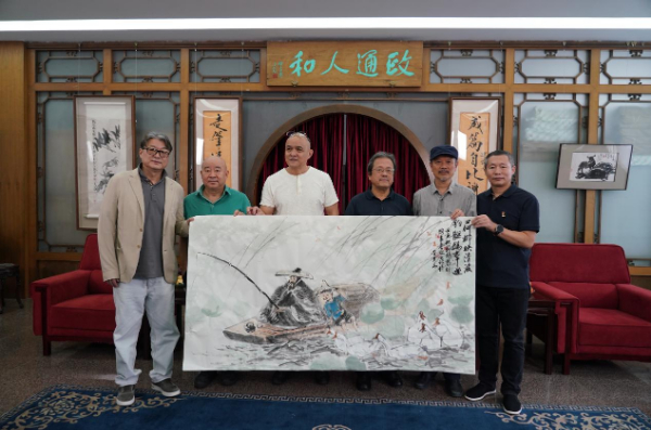 在“荣宝斋文化艺术公益基金”启动仪式上,冯远、范扬、田黎明、史国良四位艺术家现场集体创作了一幅作品《荷柳映清波 钓艇鹅群过》。此作品将参加由荣宝斋、北京荣宝拍卖有限公司、北京荣宝斋科技有限公司(荣宝斋在线)共同举办的线上义拍义卖活动。