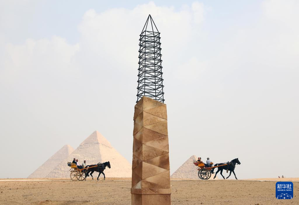 这是10月27日在埃及吉萨金字塔景区拍摄的参展艺术作品。新华社发(艾哈迈德·戈马摄)