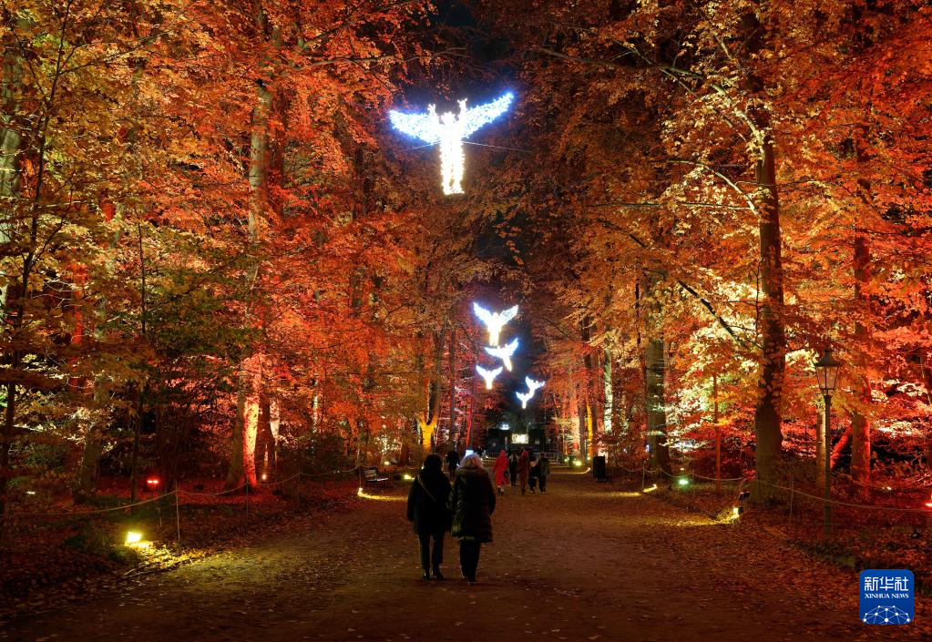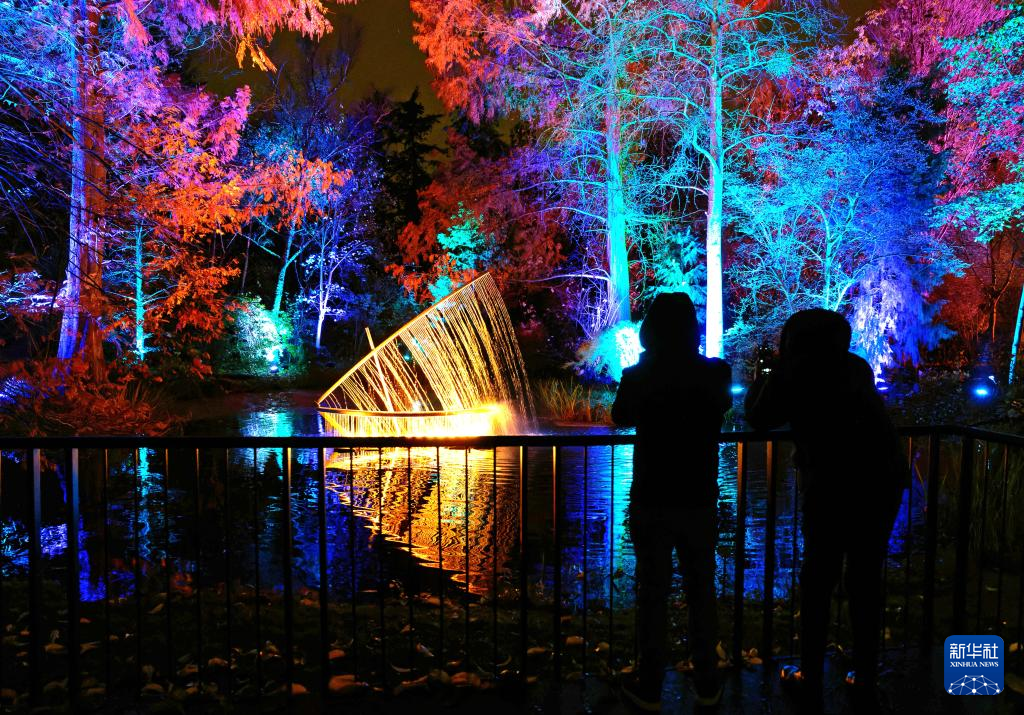 11月16日,游客在德国柏林植物园观赏“柏林圣诞花园”灯光秀。