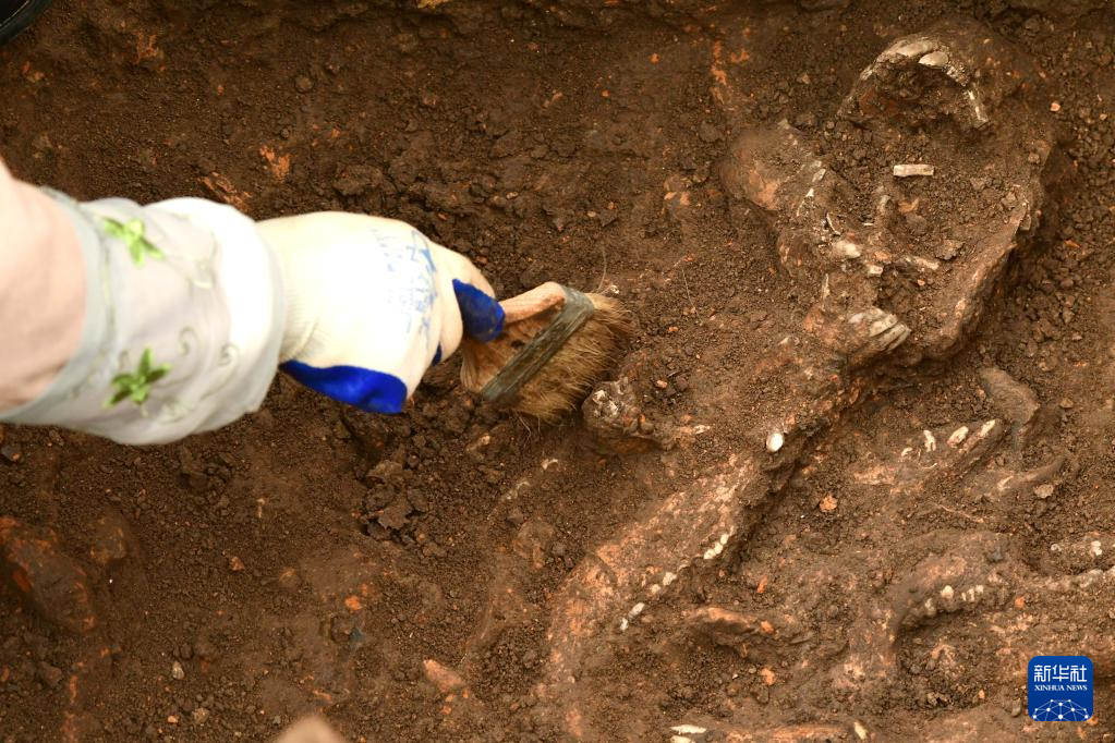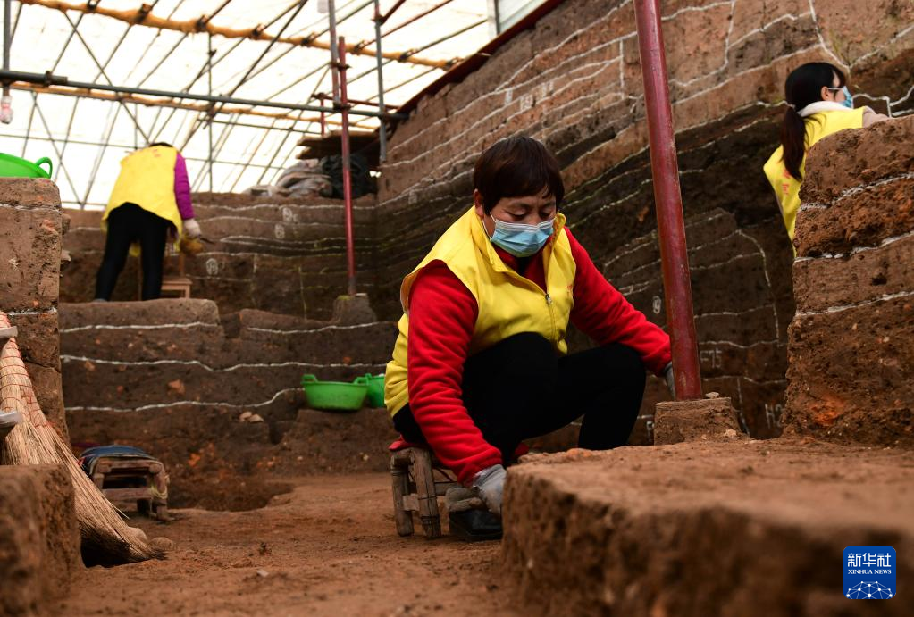 12月10日,工作人员在河南南阳黄山遗址考古发掘现场作业。