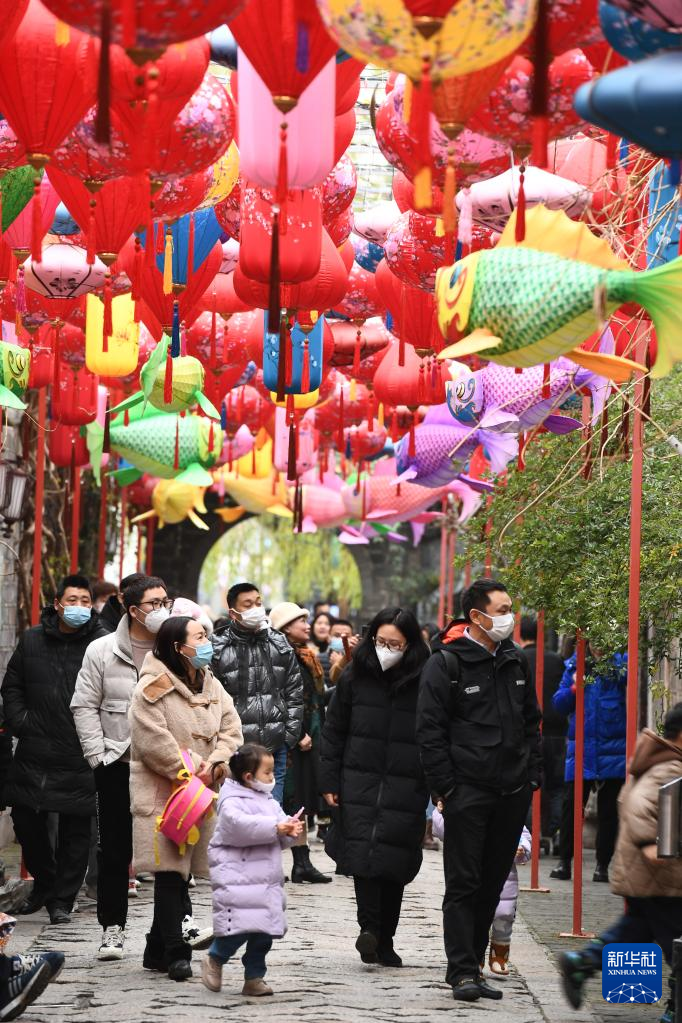 1月2日,市民在江苏南京老门东景区游玩。新华社发(杨素平摄)