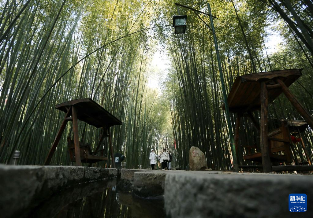 1月2日,游客在山东省临沂市沂南县铜井镇竹泉村竹林中游玩。新华社发(王彦冰 摄)