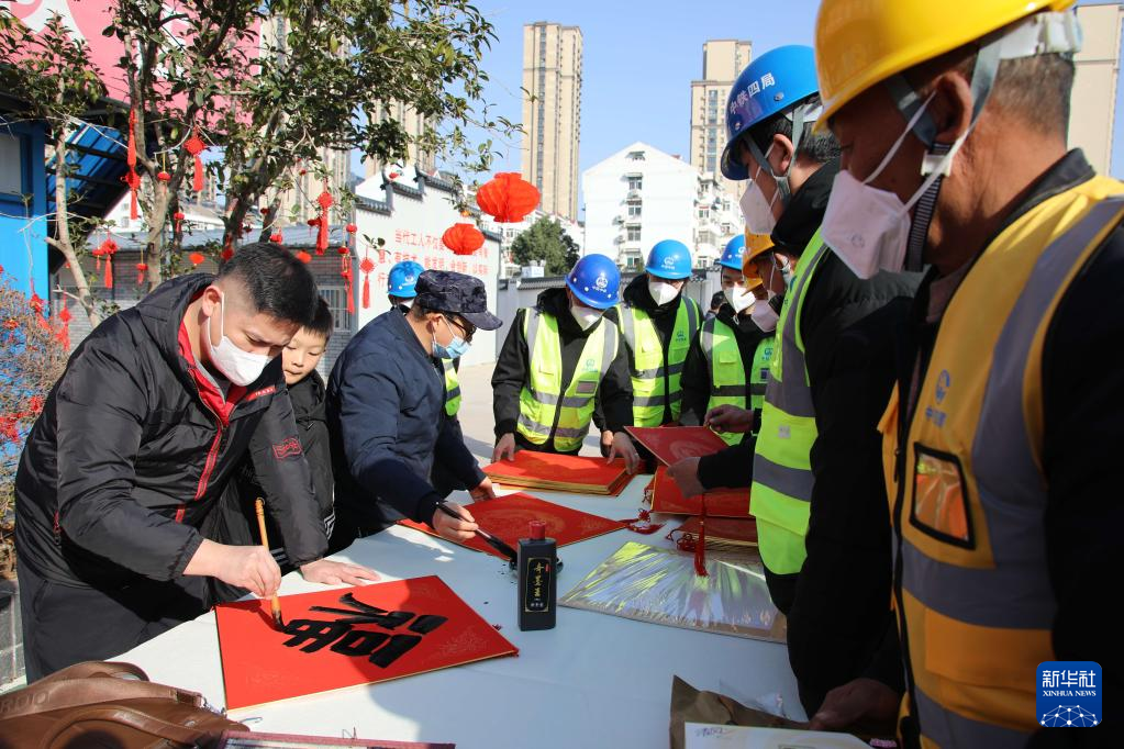 春节临近,多地组织书法志愿者走进社区、工地等场所,为人们书写春联和福字,迎接春节的到来。