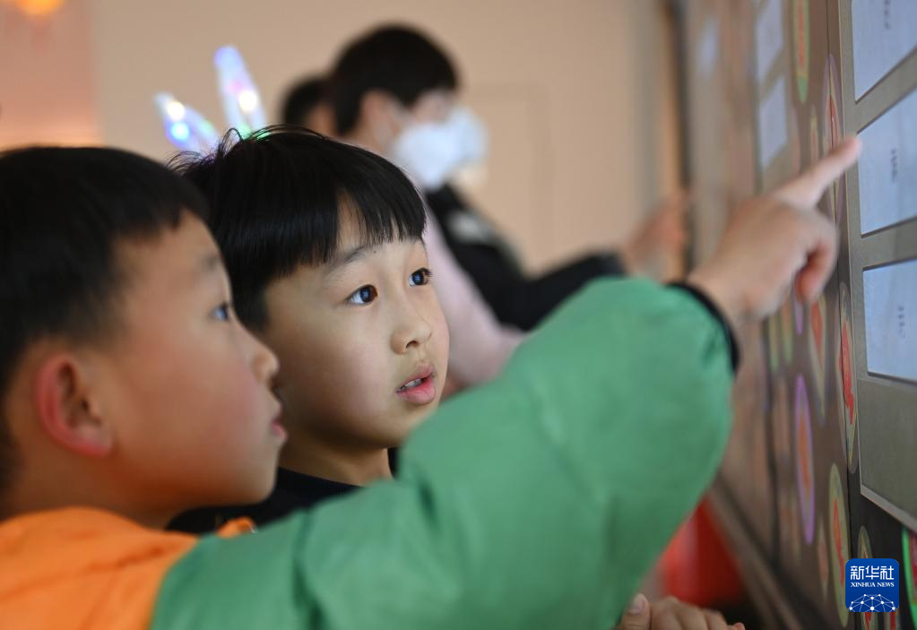2月4日,小朋友在玩字谜竞猜游戏。