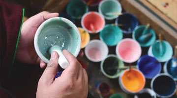 参加陶瓷文物修复师比赛项目的选手在现场进行文物修复(3月25日摄)。