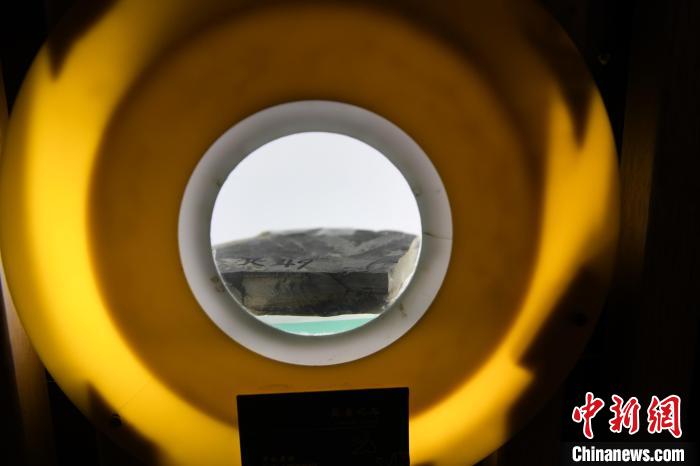 图为游客在参观古生代、中生代、新生代岩层发现的古生物化石。 戴文昌 摄