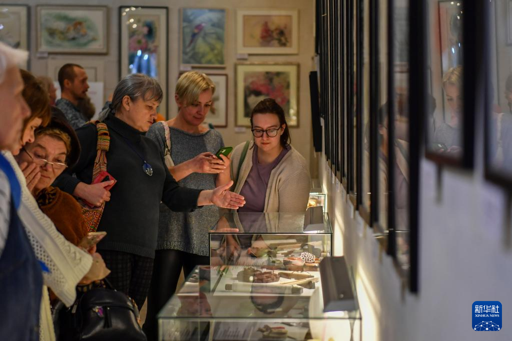 3月30日,人们在俄罗斯莫斯科达尔文博物馆参观中国画和绘画工具。