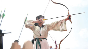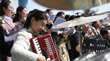 4月12日,诸暨市东白湖镇斯民小学的学生在学习传统武术舞剑。