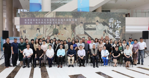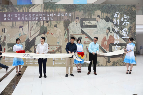 5月5日下午,“宋画,回到宋朝的家”杭州市富阳区女美术家协会宋画小品临摹展在杭州科技职业技术学院开幕。