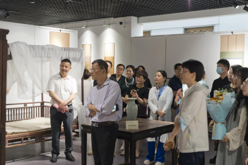 开幕式结束后,富阳区知联会“宋画,回到宋朝的家”知联文化论坛在杭州科技职业技术学院“匠心家园”举行。两千多平方米的展厅里,陈列着富阳区知联会副会长蒋金乐的350余件江浙地区古建筑的构件和家具。出自富阳区女美术家协会画师之手的40余件宋画临摹作品,展陈于精美的古建之上。