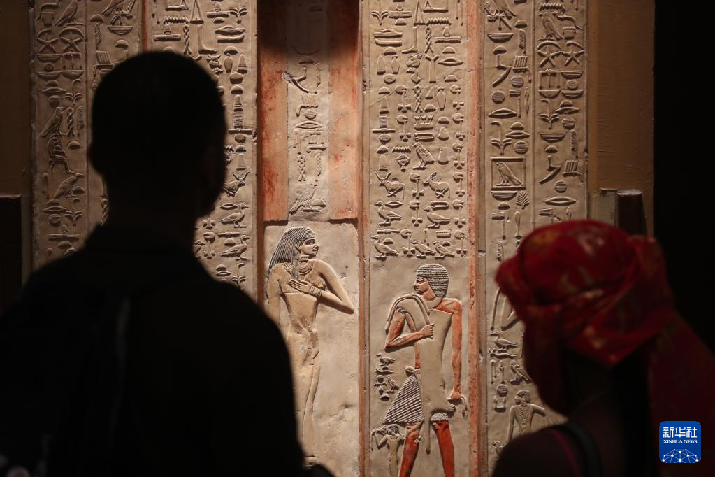 5月16日,人们在位于埃及首都开罗的埃及博物馆参观一块浮雕。
