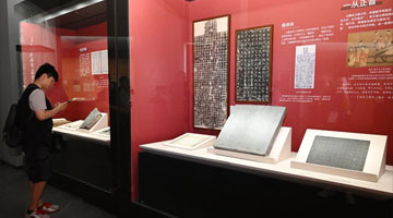 这是展出的彩绘泥塑头俑(6月16日摄)。