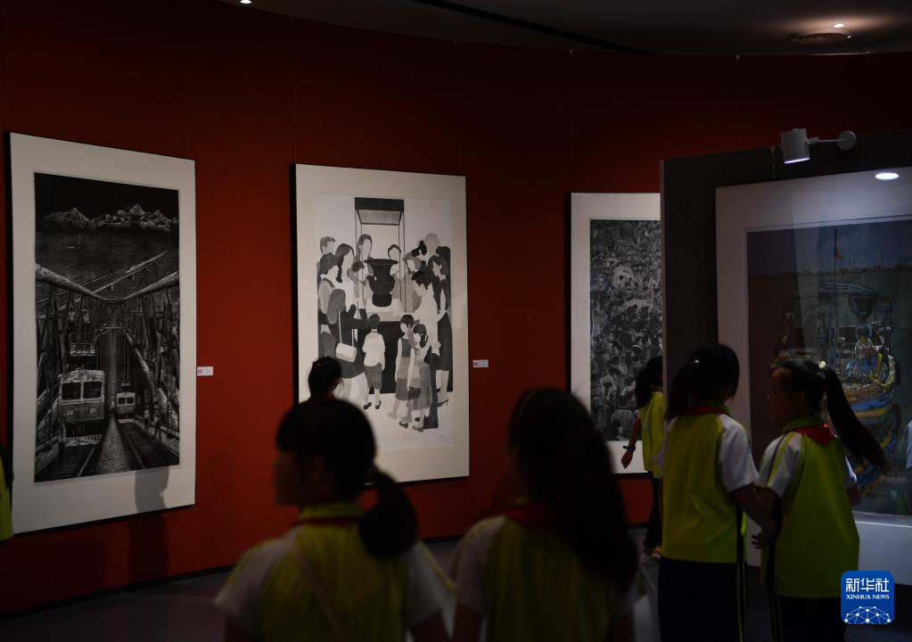 6月27日,观众在参观木刻版画作品。