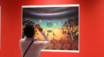 7月9日,观众在中国美术馆参观展览(手机照片)。新华社记者 李典 摄