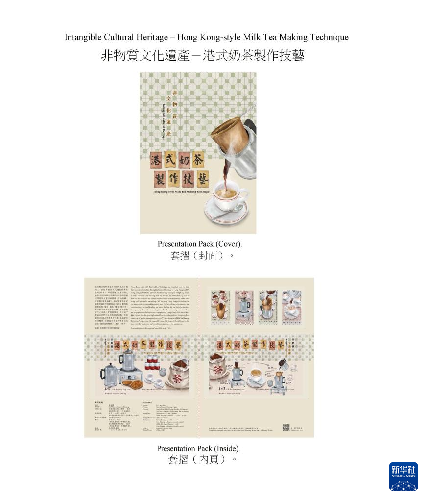 香港邮政以“非物质文化遗产——港式奶茶制作技艺”为题发行一套4枚邮票、两张邮票小型张及相关集邮品。邮票的设计展示了制作港式奶茶的步骤,包括调配茶叶、煲茶、撞茶、回温、撞奶等。香港邮政希望借此宣扬这项香港非物质文化遗产,让这项传统手工艺得以传承。