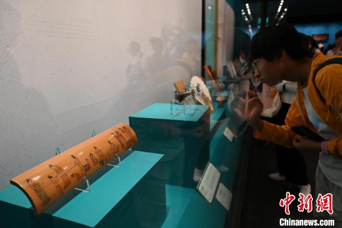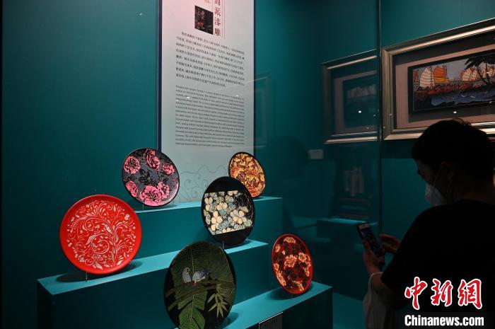 款彩漆盘组件吸引参观者。 陈楚红 摄
