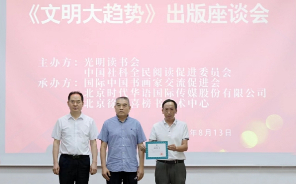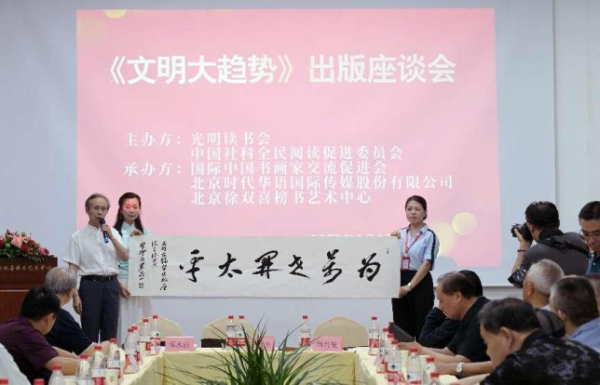 由光明读书会、中国社科全民阅读促进委员会主办的《文明大趋势——为什么说21世纪是中国世纪》新书出版座谈会8月13日在北京徐双喜榜书艺术中心隆重举行。