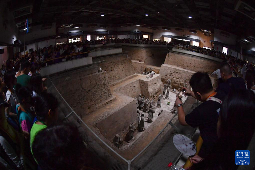 暑期将尽,但位于陕西西安临潼区的秦始皇兵马俑博物馆旅游热度不减,前来参观的游客摩肩接踵。