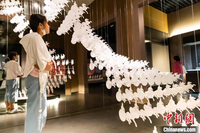 游客在展厅内欣赏艺术场景“千乘”。王在御摄
