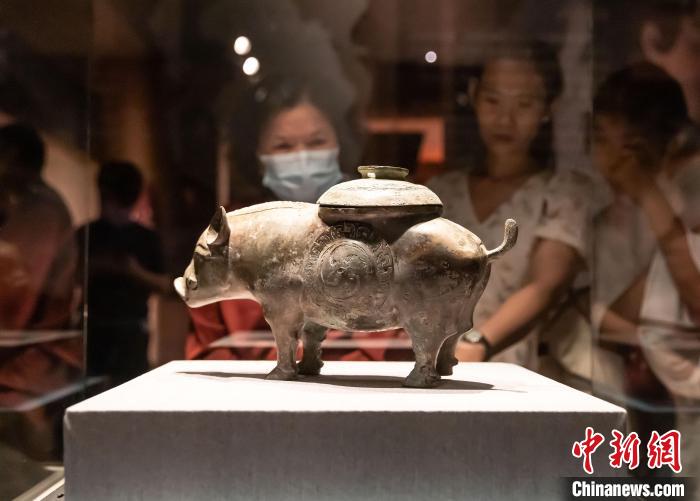 游客在参观西周时期动物器型青铜器展品猪尊。王在御摄