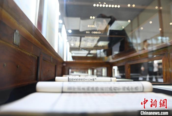 9月12日,长江文明书馆在重庆设展陈,图为展出的古籍。中新网记者 陈超 摄