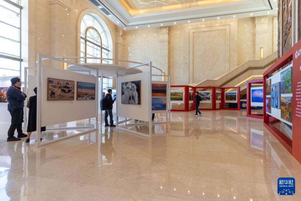 10月10日,观众参观展出的摄影作品。新华社发(包宝音德力格尔 摄)