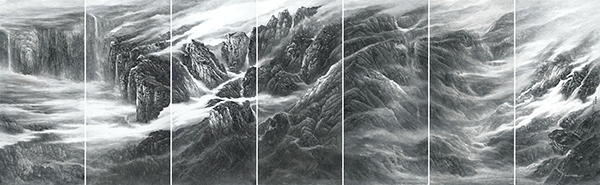 云壑听泉232cm × 106cm × 7 2023 水墨纸本