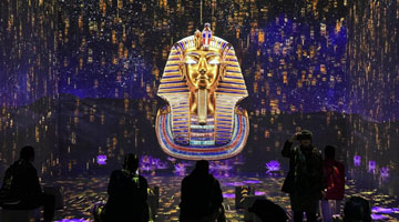 11月26日,参观者在展览现场拍摄展出的福字。
