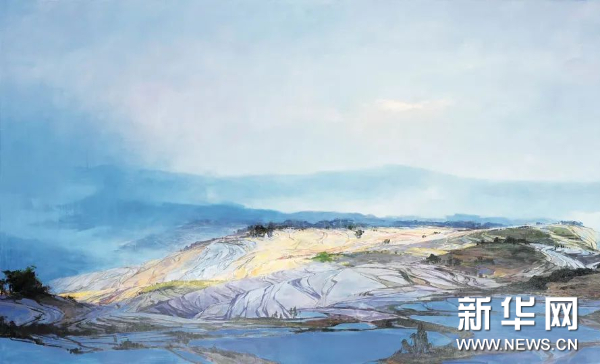 徐里的创作彰显了油画与中国传统绘画艺术之融合,将中国山水画的留白意境融入风景油画的空间营造当中,形成具有空间维度的磅礴气势,可谓在中西融通的探索开创了新的绘画格局。