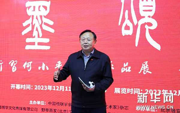 李殿仁致辞,对展览予以高度评价。他表示,北京初雪是本次展览的好兆头,并总结了“翰墨颂辉煌”展览的四大辉煌。本次展览以坚定文化自信、秉持开放包容、坚持守正创新为传承文化的指导原则,浓缩了对社会的认知、对美好的体验、对艺术的追求。