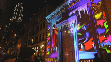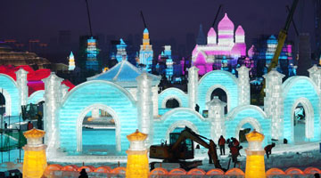 12月21日,演职人员在环幕多媒体秀《星河之间》上进行器乐演奏。