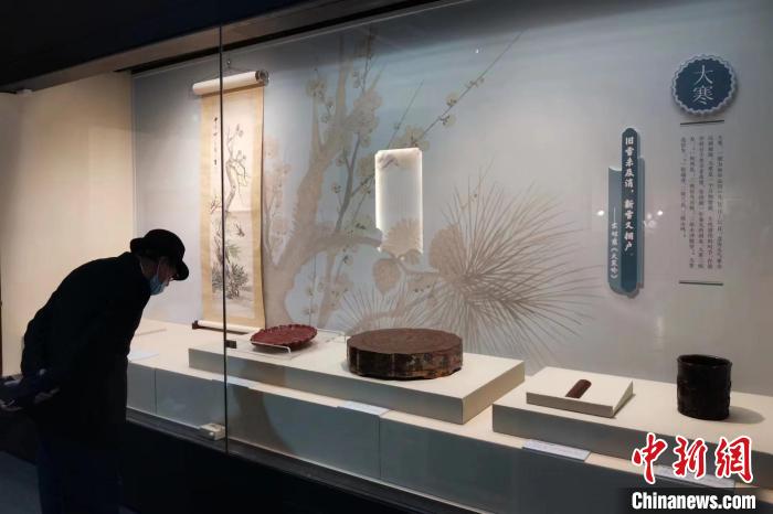 1月20日是中国二十四节气最后一个节气大寒,天津博物馆特别推出《岁华纪丽——天津博物馆馆藏二十四节气文物精华展》,这也是该馆首次推出二十四节气相关文物展。图为参观者观看展览。 佟郁 摄