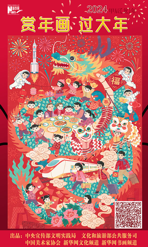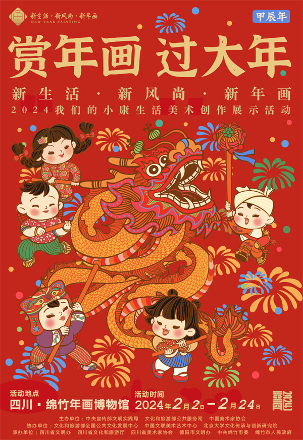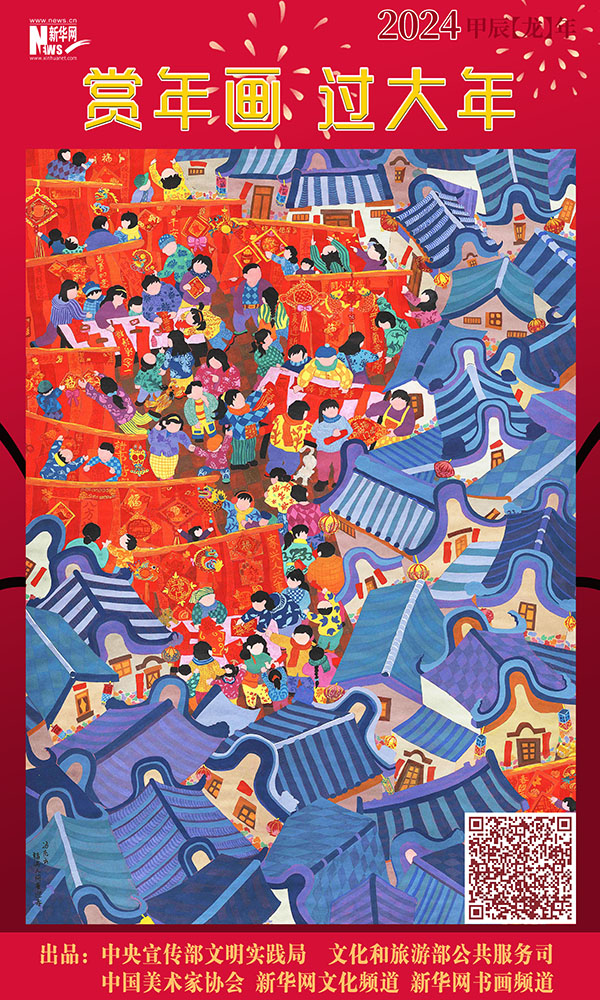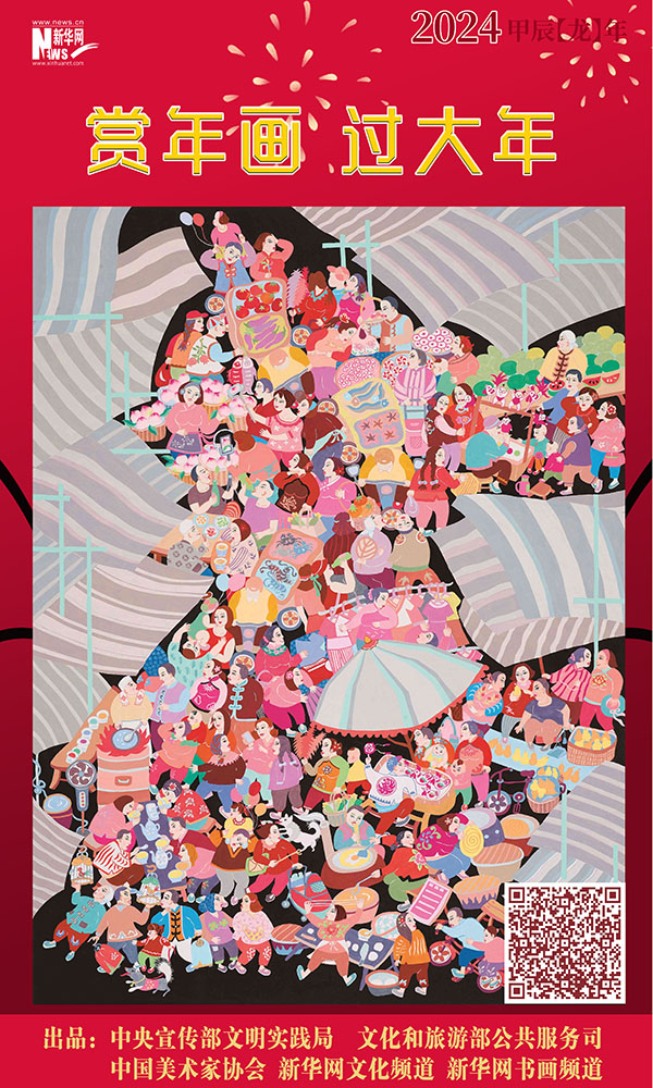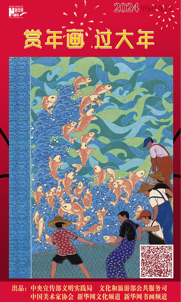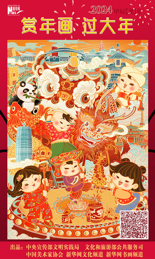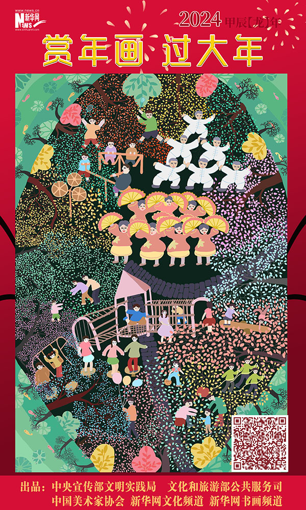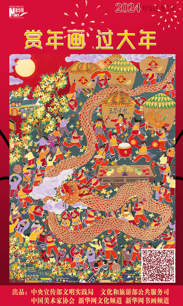 编者按:龙年春节将至,中央宣传部文明实践局、文化和旅游部公共服务司、中国美术家协会联合新华网文化频道、新华网书画频道共同出品推出一组“赏年画过大年”艺术海报,这组海报是精选自正在四川绵竹年画博物馆展出的“新生活·新风尚·新年画——我们的小康生活美术作品展览”的年画作品,希望借由这些充满盎然生趣、红火年节气氛的画作,为您送去新春的祝福,让我们一起“赏年画 过大年”,在中华优秀传统文化的浸润下,享受节日的祥和与喜悦。