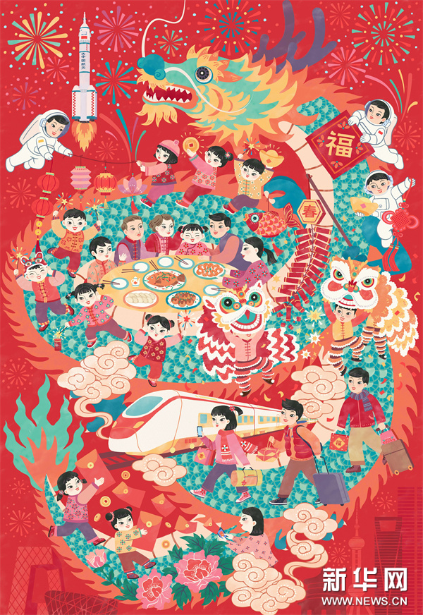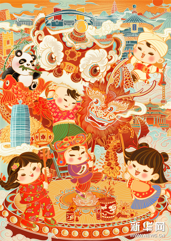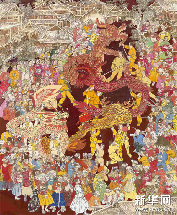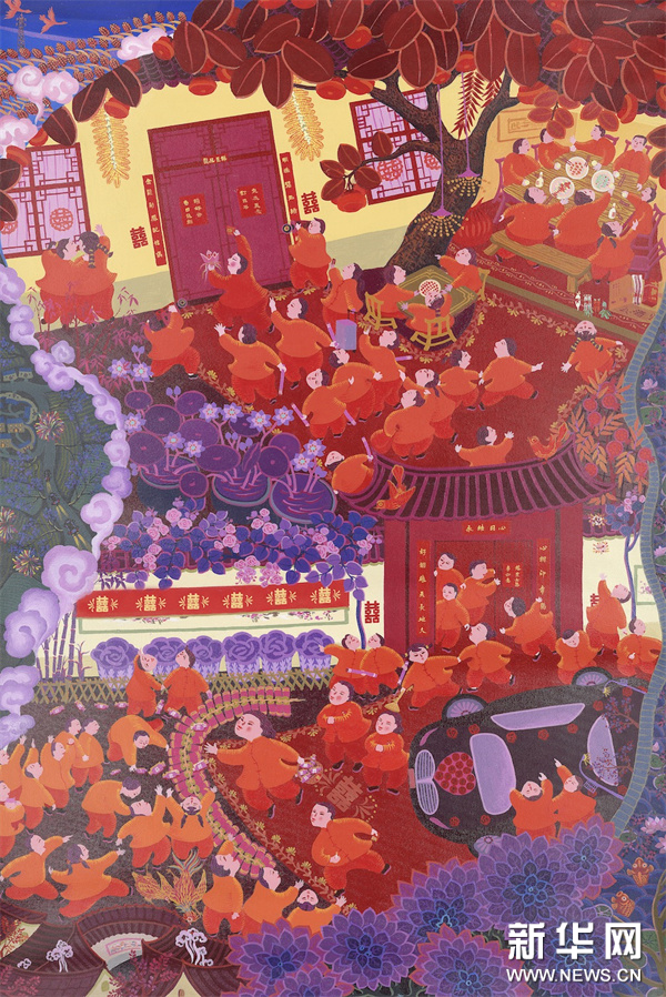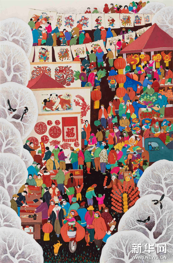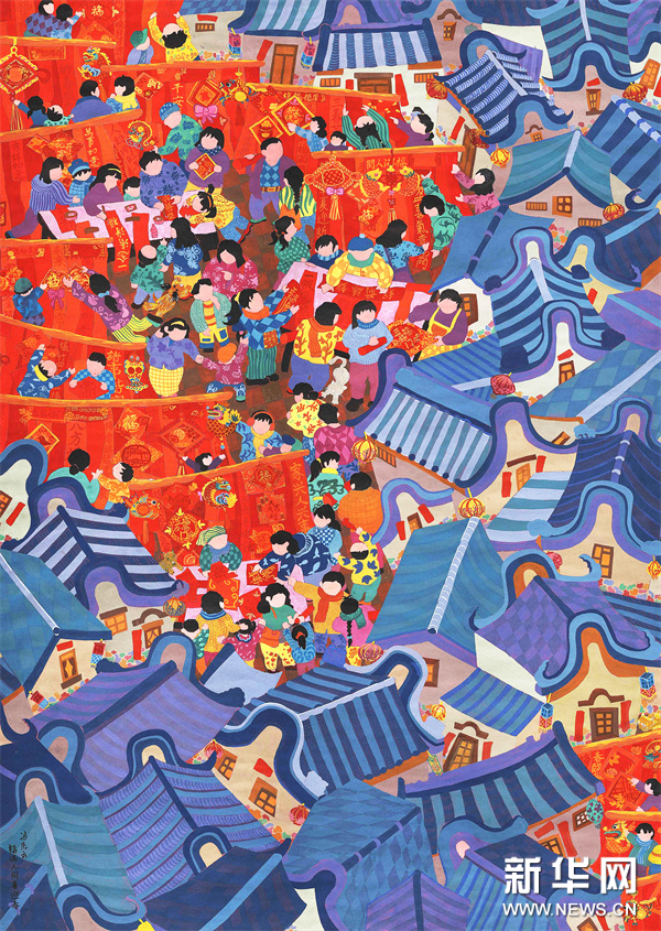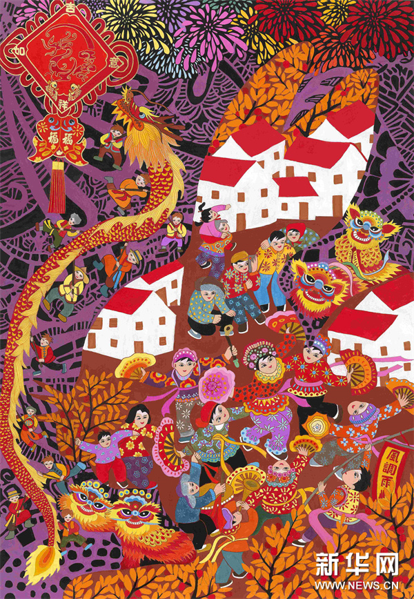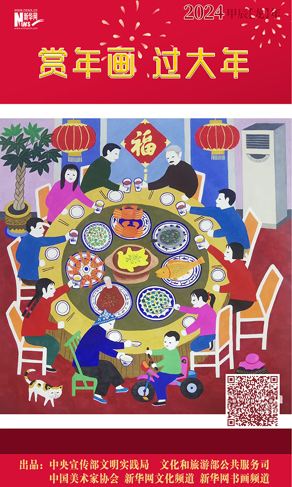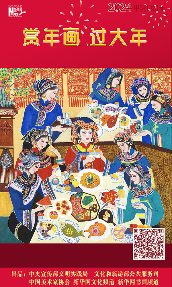 编者按:龙年春节将至,中央宣传部文明实践局、文化和旅游部公共服务司、中国美术家协会联合新华网文化频道、新华网书画频道共同出品推出一组“赏年画过大年”艺术海报,这组海报是精选自正在四川绵竹年画博物馆展出的“新生活·新风尚·新年画——我们的小康生活美术作品展览”的年画作品,希望借由这些充满盎然生趣、红火年节气氛的画作,为您送去新春的祝福,让我们一起“赏年画 过大年”,在中华优秀传统文化的浸润下,享受节日的祥和与喜悦。