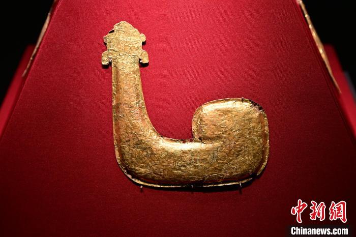 布满龙纹的龙形包金箔铜饰片。景卫东 摄