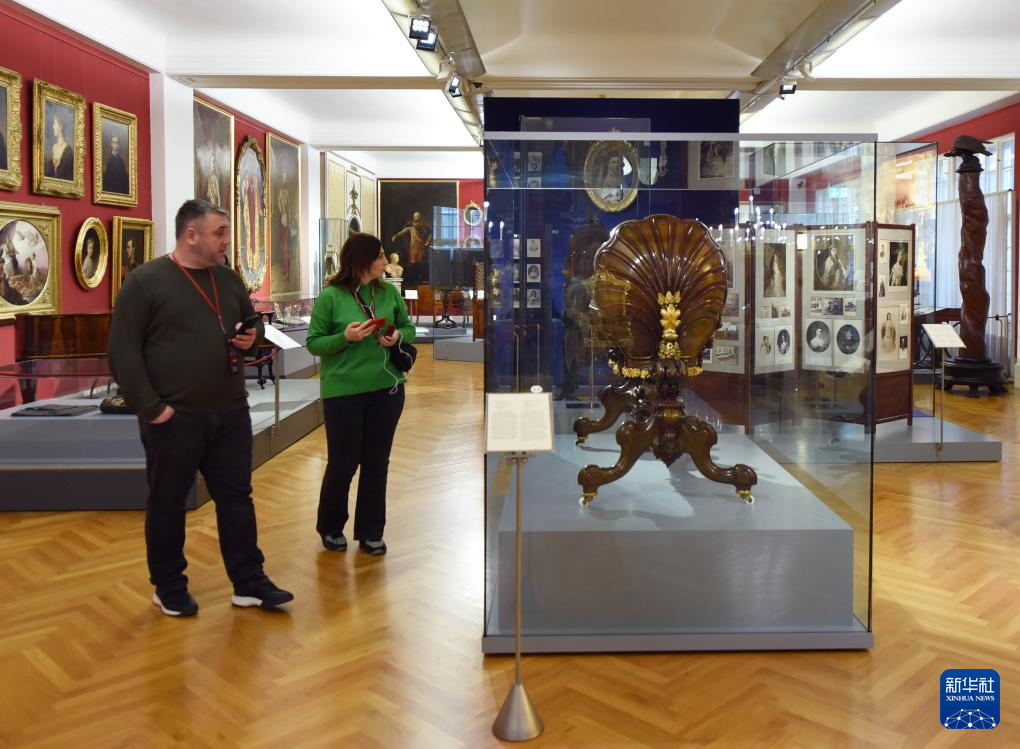 这是3月1日在维也纳家具博物馆拍摄的19世纪早期沙龙样板间。