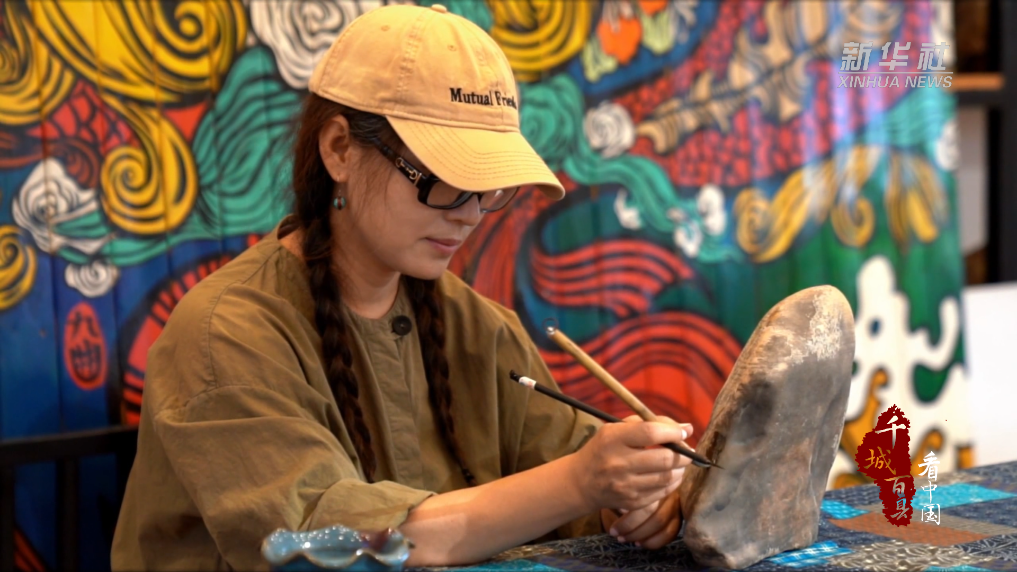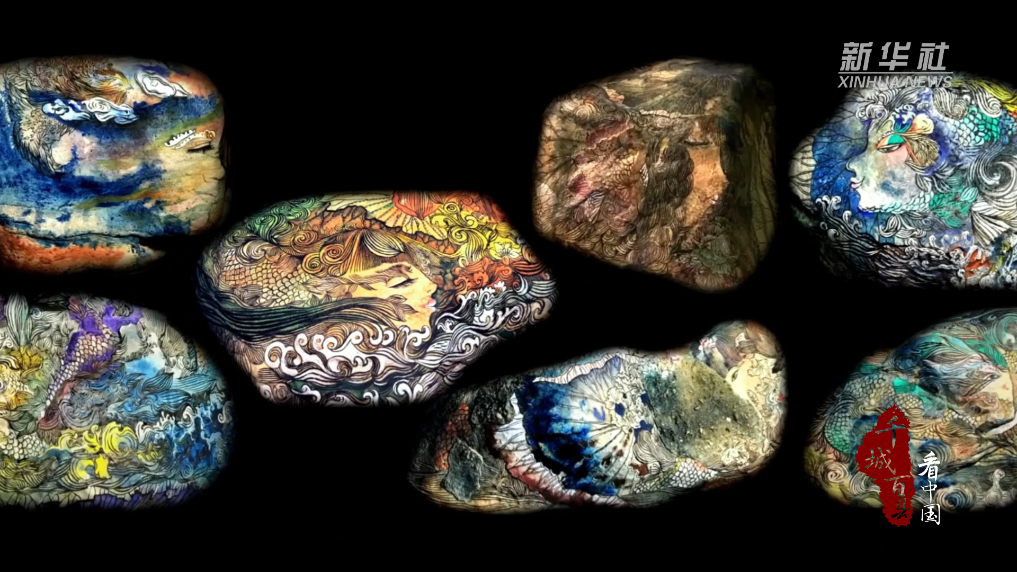 黄河石彩绘,是一种独特的艺术表达形式。从小在内蒙古乌海市海南区黄河边长大的美术工艺师鲁婷以黄河石为媒,把喜怒哀乐倾注在笔端,将黄河故事绘制在普通的黄河石或石壁上,让一块块朴实圆润的黄河石焕发出鲜活的生命。