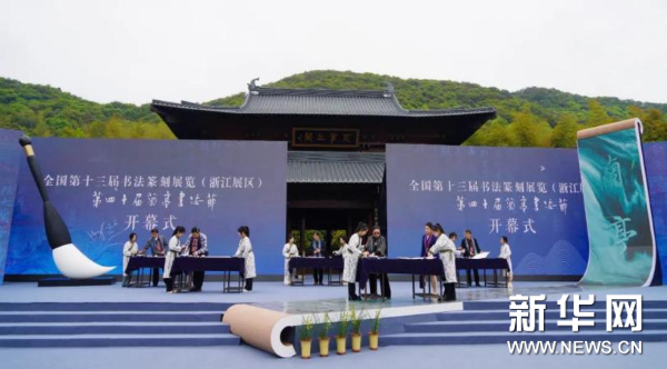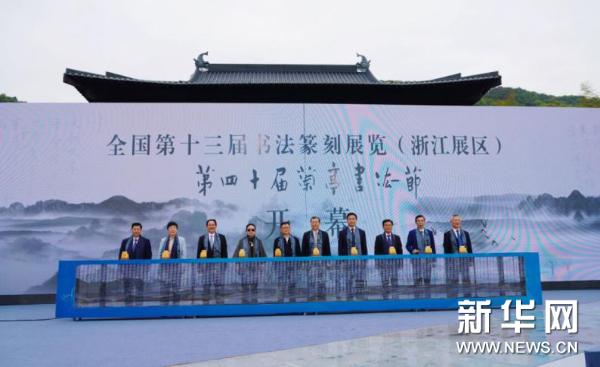 徐永军、叶正波、孙晓云、李昕、温暖、施惠芳、范庆瑜、杨守卫、谭志桂、魏伟等共同为全国第十三届书法篆刻展览(浙江展区)、第四十届兰亭书法节启幕。