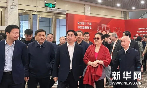开幕式后,领导嘉宾参观了全国第十三届书法篆刻展览山西展区作品。