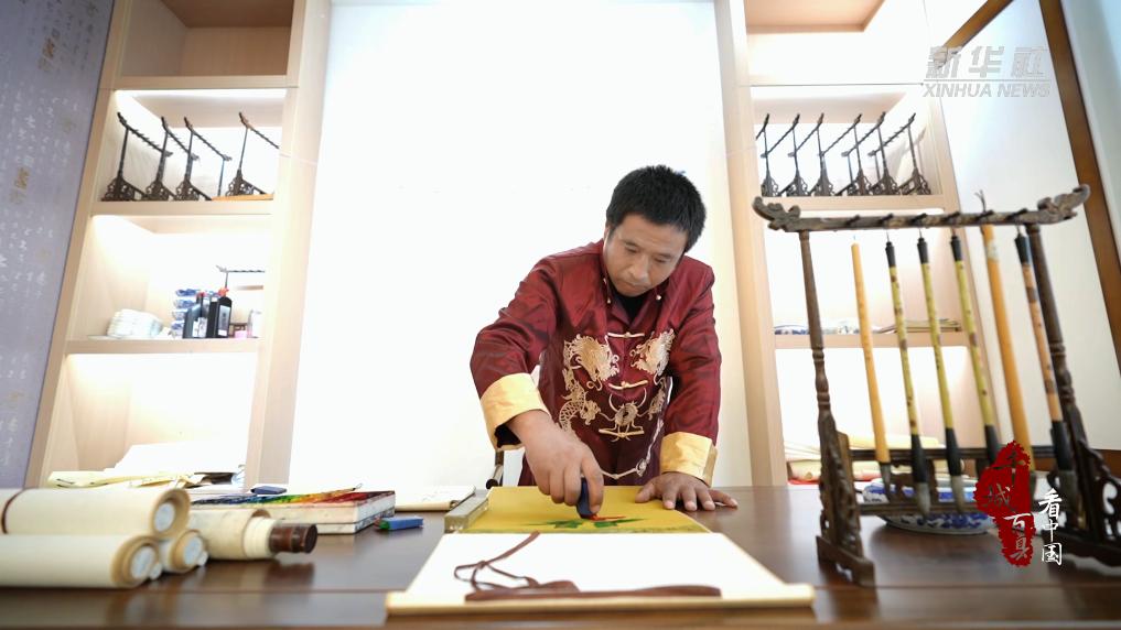 卷轴展开,画笔轻起,一幅由山水、花鸟等图案组成的字画便展现在人们眼前。赵珠华是山东东营经济技术开发区的黄河口龙凤花鸟字画非遗传承人,多年来,他潜心专研、开拓创新,逐渐形成了自己独特的风格。